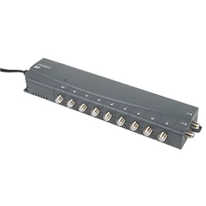 Expandable 9-way TV and radio signal amp. Full output can be split to feed an 9 points. Line-power on UHFTV input for a masthead pre-amp. Compact housing with F-connectors.