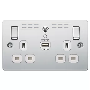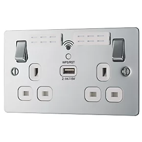 Be the first to review “LAP 13A 2-Gang SP Switched Wi-Fi Extender Socket + 2.1A 1-Outlet Type A USB Charger Polished Chrome with White Inserts” Cancel reply