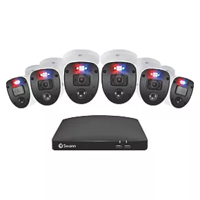 True Detect senses heat and motion to trigger flashing lights and bright spotlights. Activity also triggers reliable push notifications with fewer false alarms and video recording. Enforcer Cameras make it possible to see faces and license plates with 1080p Full HD video and powerful digital zoom to watch over entrances, yards, driveways, parking lots, storerooms and more. Cameras also feature Night2Day technology, providing full spectrum colour night vision. Colour infrared night vision up to 10m and black and white up to 30m. Mount cameras indoors or out as their weatherproof design is built to withstand rain, snow and heat. Enjoy local recording onto the 1TB hard drive and the option to back-up video securely to a Dropbox account. Watch live or playback video on a smartphone from anywhere in the world with the Swann Security app. Speak to see via the Google Assistant or Alexa. Enjoy hands-free security using voice commands. Stream video from a camera via the Google Assistant and Chromecast, Google Home Hub, or via Alexa devices with a screen, such as Echo Spot, Echo Show or 4K Fire TV.
